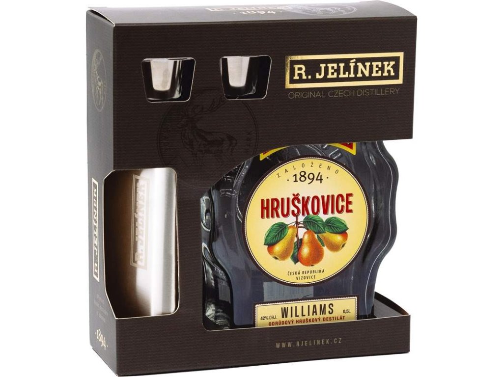 R. Jelínek Hruškovice 45 % 0.5 l + butylka + 2 sklenky představuje poctivý ovocný destilát z čistých zralých hrušek, vyráběný tradiční metodou ve Vizovicích, s jemně vyšší sílou 45 %. Tato varianta navazuje na dlouhou tradici hruškovic značky R. Jelínek a nabízí intenzivnější chuťový projev, hlubší vůni a čistší ovocný charakter. Dárkový set s praktickou butylkou a dvěma originálními sklenkami podtrhuje výjimečnost a reprezentativní charakter této edice.