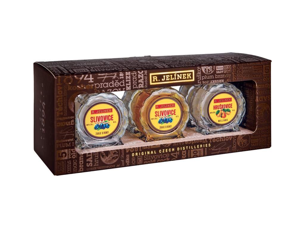 R. Jelínek Soubor miniatur 6×50ml nabízí průřez tím nejlepším z produkce vizovické likérky. Každá miniatura představuje originální ovocný destilát vyrobený z pečlivě vybraného ovoce, zpracovaného tradičním způsobem a bez přídavku cukru či aromat. Destilace probíhá v měděných kotlích metodou dvojí destilace, která zaručuje čistotu a vyváženou chuť.
