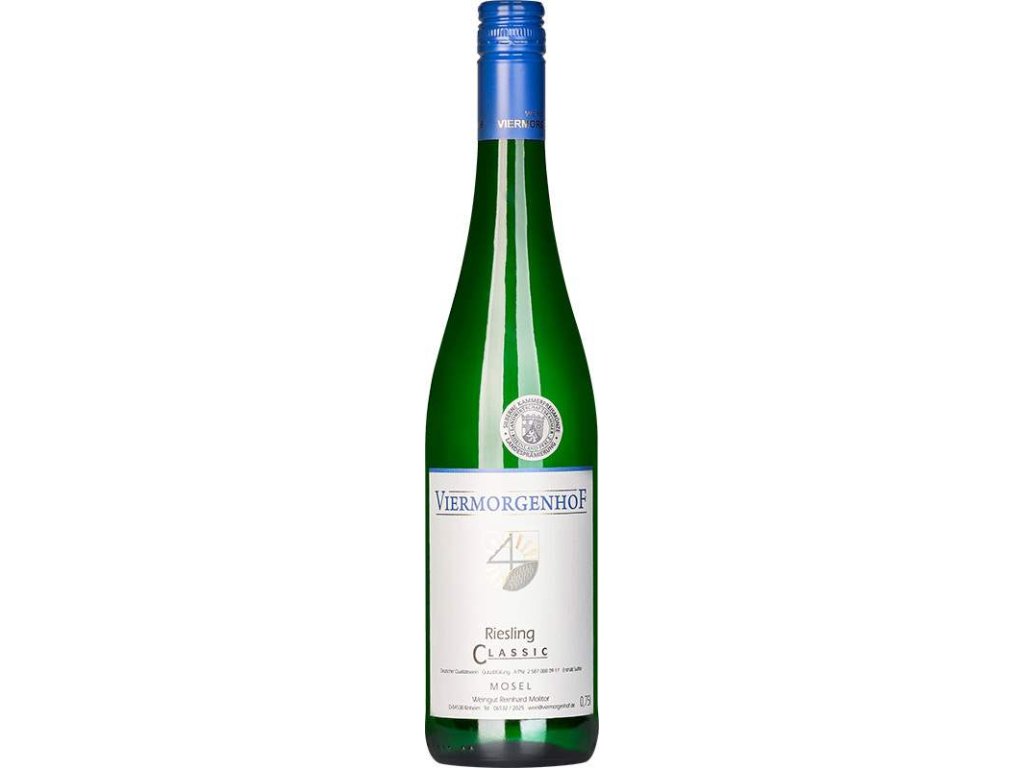 Viermorgenhof Riesling Classic 750ml pochází z oblasti Mosel, kde se ryzlink tradičně vinifikuje do stylu s lehčím tělem, příjemnou kyselinou a jemnou mineralitou. Označení „Classic“ odkazuje na víno s harmonickým poměrem zbytkového cukru a kyseliny, díky čemuž působí přístupněji než suché varianty. Zpracování se soustředí na zachování čistého projevu odrůdy, bez zbytečných zásahů, aby vynikl přirozený charakter moselského terroiru.