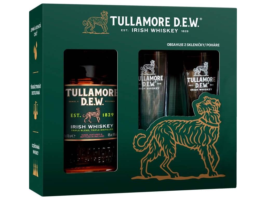 Tullamore Dew Irish Whiskey 40% 700ml + 2x sklo